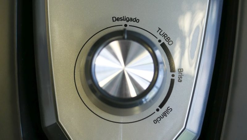 A maior e praticamente única diferença entre o modelo de bancada e o de coluna fica justamente na coluna do ventilador. Abaixo do motor essa versão possui uma peça plástica contendo o seletor o desenho é similar ao de bancada porém mais voltado para a frente do produto. Além disso carrega um desenho mais quadrado na cor preta com uma peças de acabamento cinza, contendo o mesmo seletor no centro.